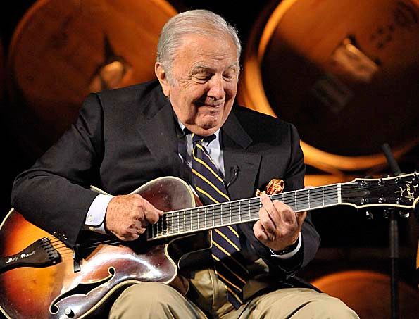 For more than seven decades, the legendary Bucky Pizzarelli has had a stellar career. As “The complete jazz musician”, he has been a fixture in jazz and the studios since the 1940s. The list of big bands and vocalists with whom Bucky has performed and recorded reads like a veritable Who’s Who of Jazz. One of the era’s most solid rhythm players, Pizzarelli was in high demand, playing and touring with Benny Goodman, Zoot Sims, Bud Freeman, Stephane Grappelli, The Tonight Show Band, and Frank Sinatra. Most recently he recorded Paul McCartney on his new Grammy Award winning album, Kisses on the Bottom.